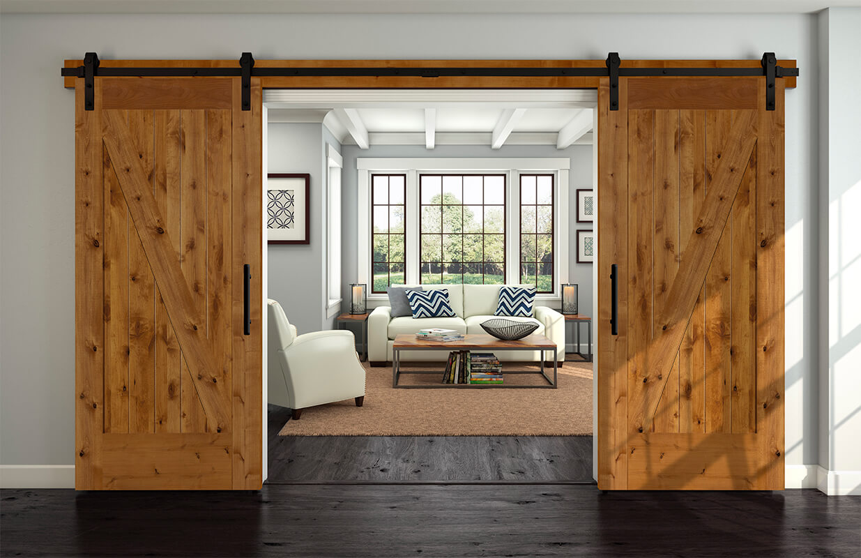 Image shown is a 80812 Interior Barn door in Knotty Alder.