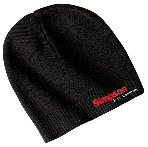 Port Authority 100% Cotton Beanie in Black with Simpson Door Company logo embroidered on cuff.