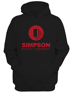 7.8-ounce, 50/50 cotton/poly fleece; Air Jet Yarn, pill-resistant hooded sweatshirt in black with updated Simpson Imprint on Front in Red.