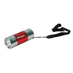 It's a flashlight... but when you pull it out it can serve as a mini lantern! This cleverly designed item allows for light out the front and light from the sides of the 1 bulb flashlight head. Red with Simpson Door Logo Laser Engraved