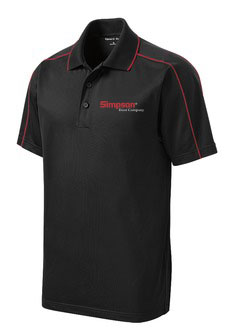 Sport-Tek Micropique Sport-Wick Piped Polo in Black with Red piping and Simpson Door Company Logo embroidered on left chest in Red/White.