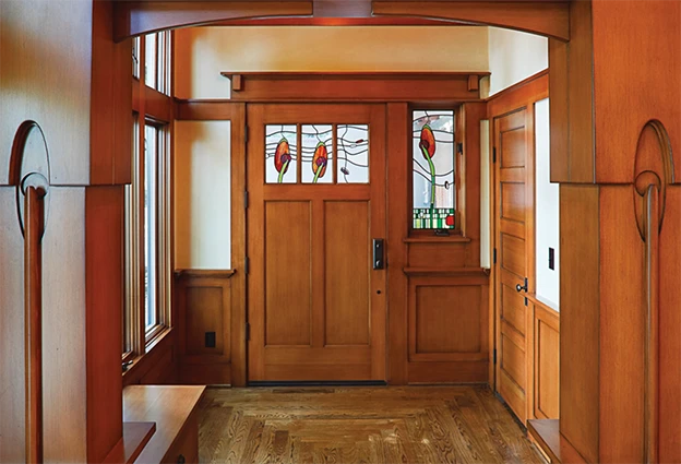 shown in Douglas Fir with custom glass